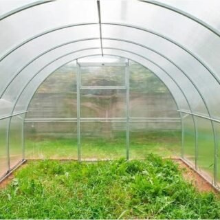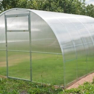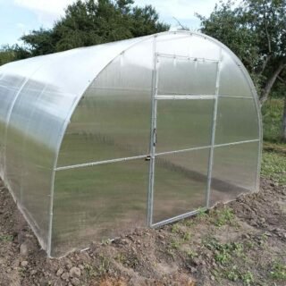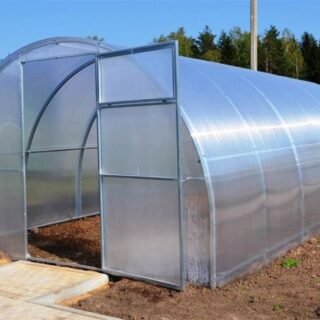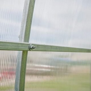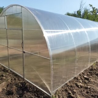 Теплиця покривається з усіх сторін полікарбонатом преміум або стандартного класу товщиною 4, 6 або 8 мм. Також використовується профіль оцинкований гарячим способом, не іржавіє та служить довго. Термін експлуатації 25-30 років.