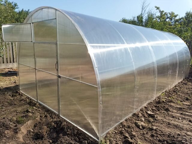 У теплиці шириною 3 метри з обох сторін встановлено по 2 двері, по 1 дверях із віконцем з кожного торця. Тип дверей: одностворчасті, ширина дверей 0,95 м.
